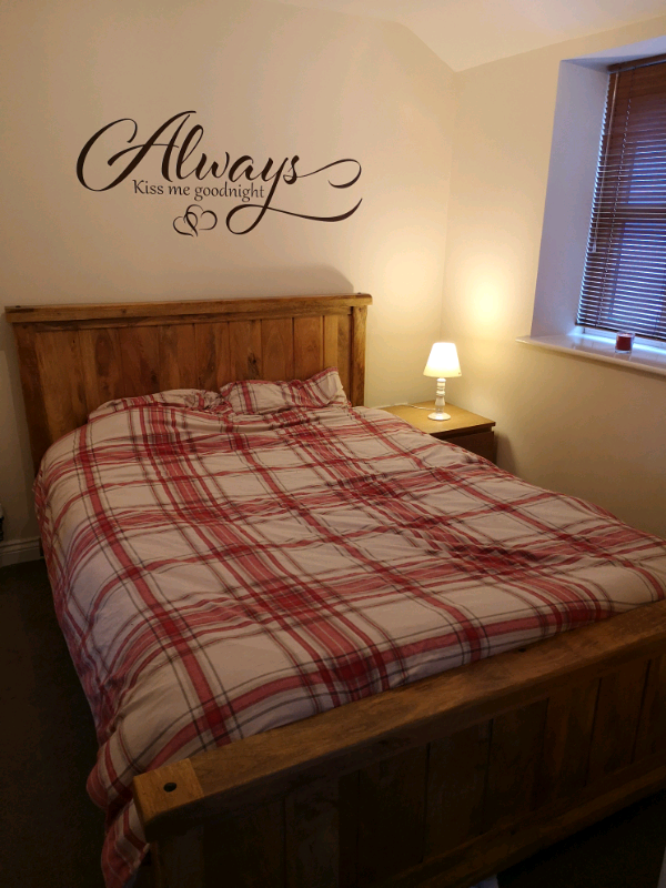 Lovely Hand-painted Solid Wood King-size Bed Frame with ... from i.ebayimg.com Queen size solid wood bed with high quality mattress. Full platform bed frame with wooden slat mattress foundation; King size bed frames are the most preferred type of frame. A king bed runs 76 x 80 inches on the inside. However, you might come across models that are slightly smaller or larger than this. Our cal king sized frame was also damaged in transit leaving multiple broken edges. Chances are you'll discovered another solid wood bed frame king size higher design concepts. Minimalist queen size bed with leather frame and solid wood.